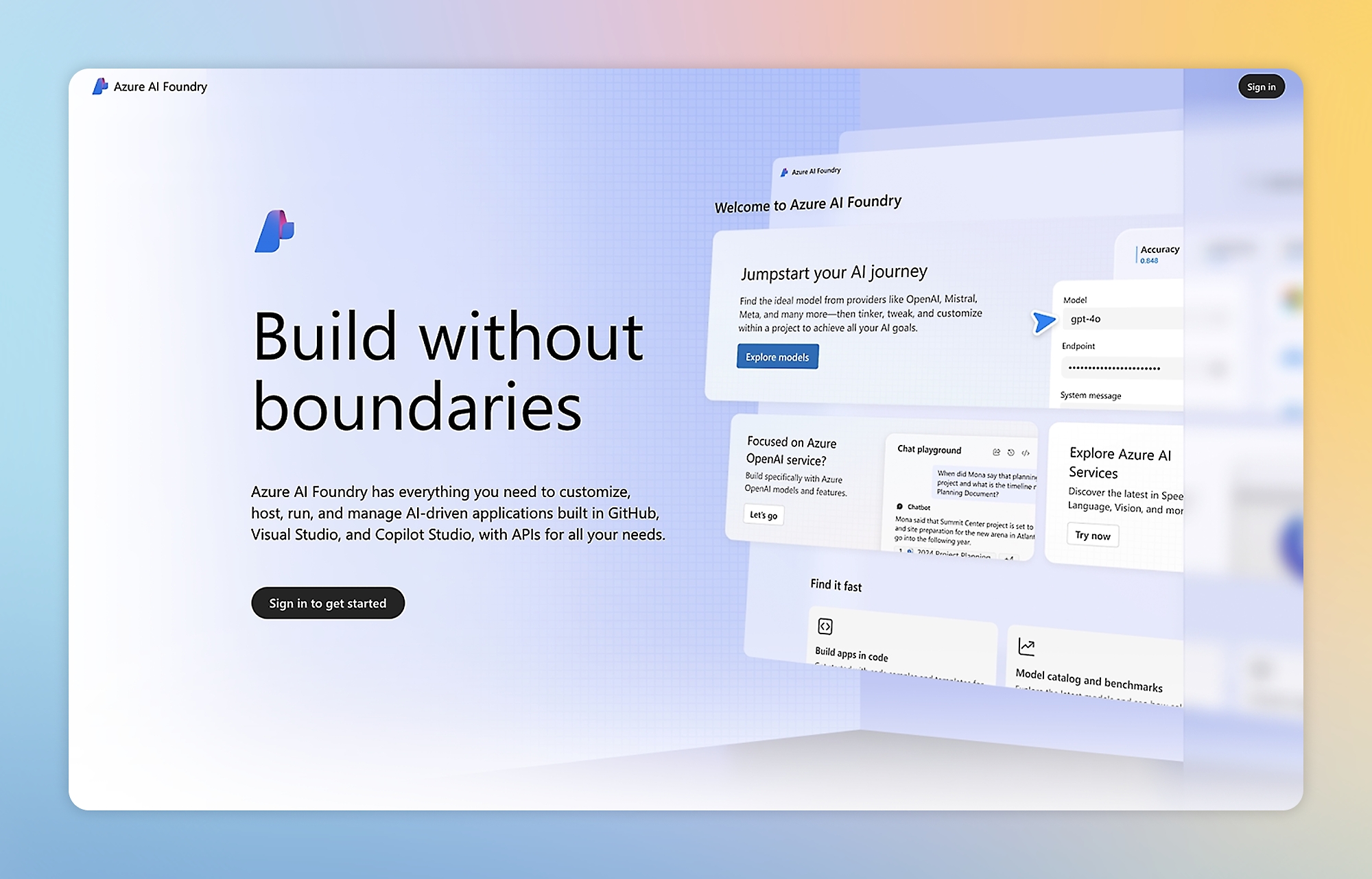 Gain a competitive edge by building AI apps powered by foundation models, including those from Microsoft, OpenAI, Meta, and Cohere.