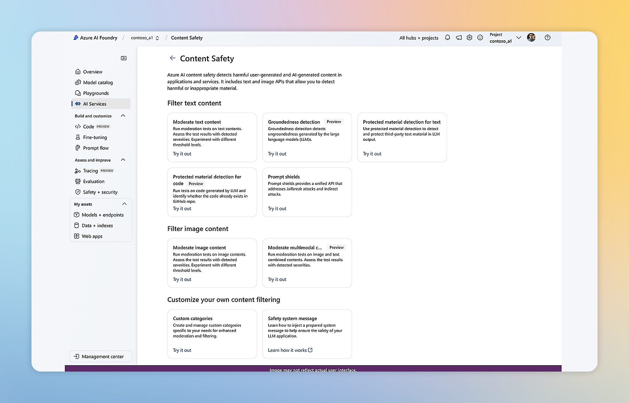 [Learn more](https://azure.microsoft.com/en-us/products/ai-services/ai-content-safety)